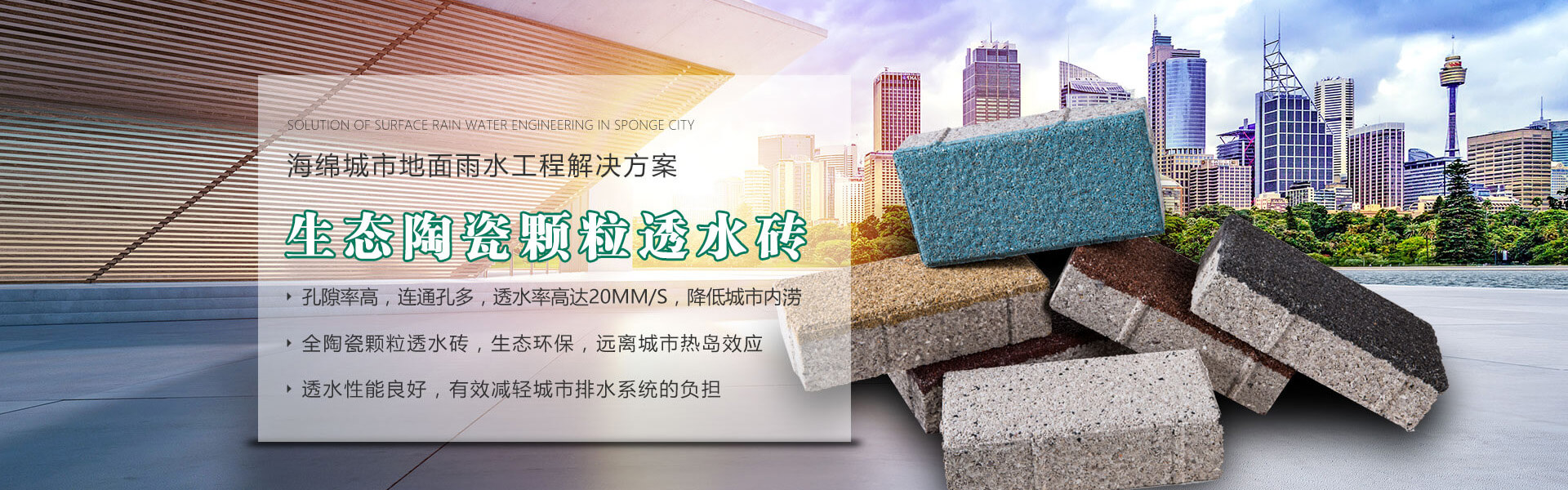 四川銘成永美環保科技有限公司(www_mcotcn_com.haibaogezi.cn)是國內非常早研究探索海綿城市的企業之一,公司主導產品:海綿城市鋪路磚家---銘成永美生態陶瓷透水磚已在全國多個重點項目使用。公司透水混凝土、雨水收集利用系統正在全國推廣。公司將整合海綿城市規劃設計、污水處理、污泥利用、環保設備、社會資本等海綿城市相關產業。為解決城市“熱島效應”、地表硬化,防止城市內澇,營造高質量的自然生態環境,改善城市生態平衡而不斷努力!公司將充分利用現有的互聯網資訊平臺,整合生態海綿城市產業鏈,打造集互聯網、科研、生產、銷售、規劃設計、PPP項目營運、工程施工為一體的綜合性環保科技公司,已初步建立覆蓋全國的業務團隊和渠道。